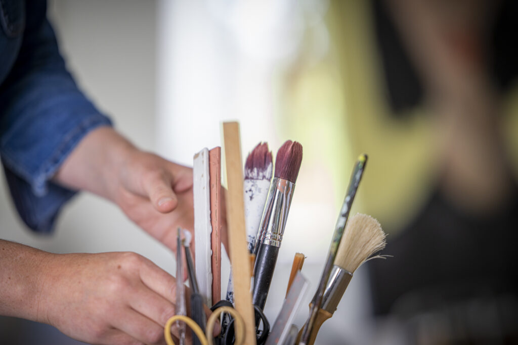 I værkstedet i Blommenslyst afholdes kurser og workshops, hvor du kan fordybe dig i form, teknik og materialer – og finde ro i et kreativt fællesskab.
